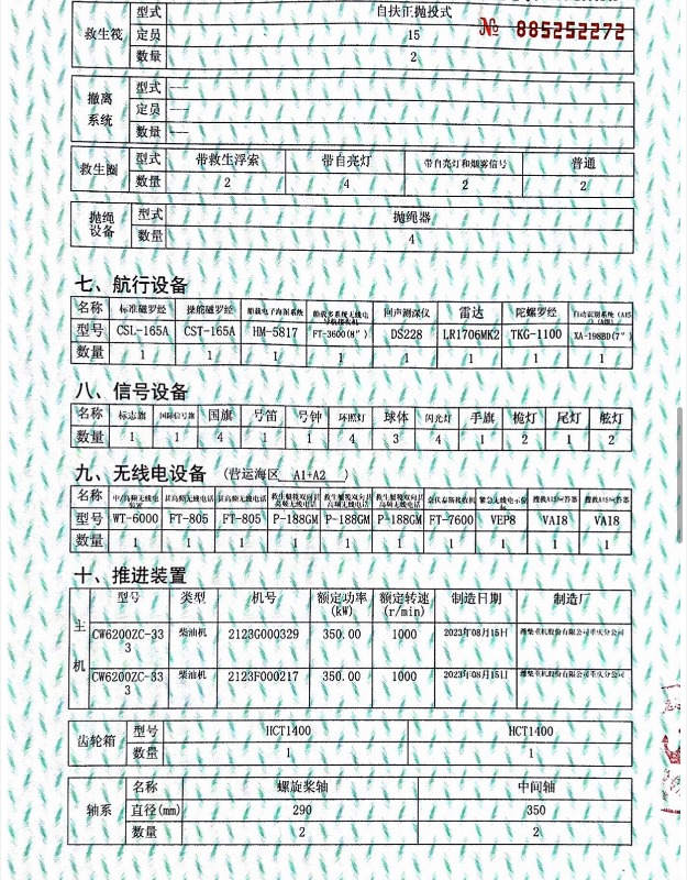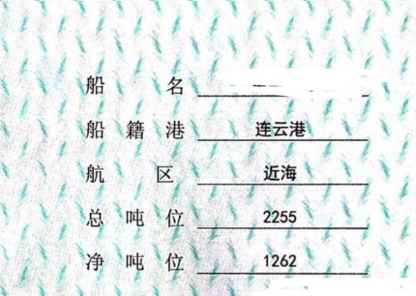 证书载货吨位3500吨